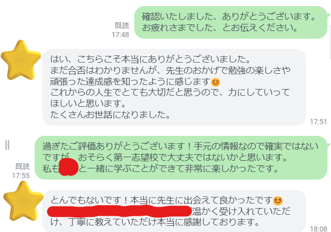 ・卒塾生の保護者様から身に余るお言葉を頂きました。ありがとうございます