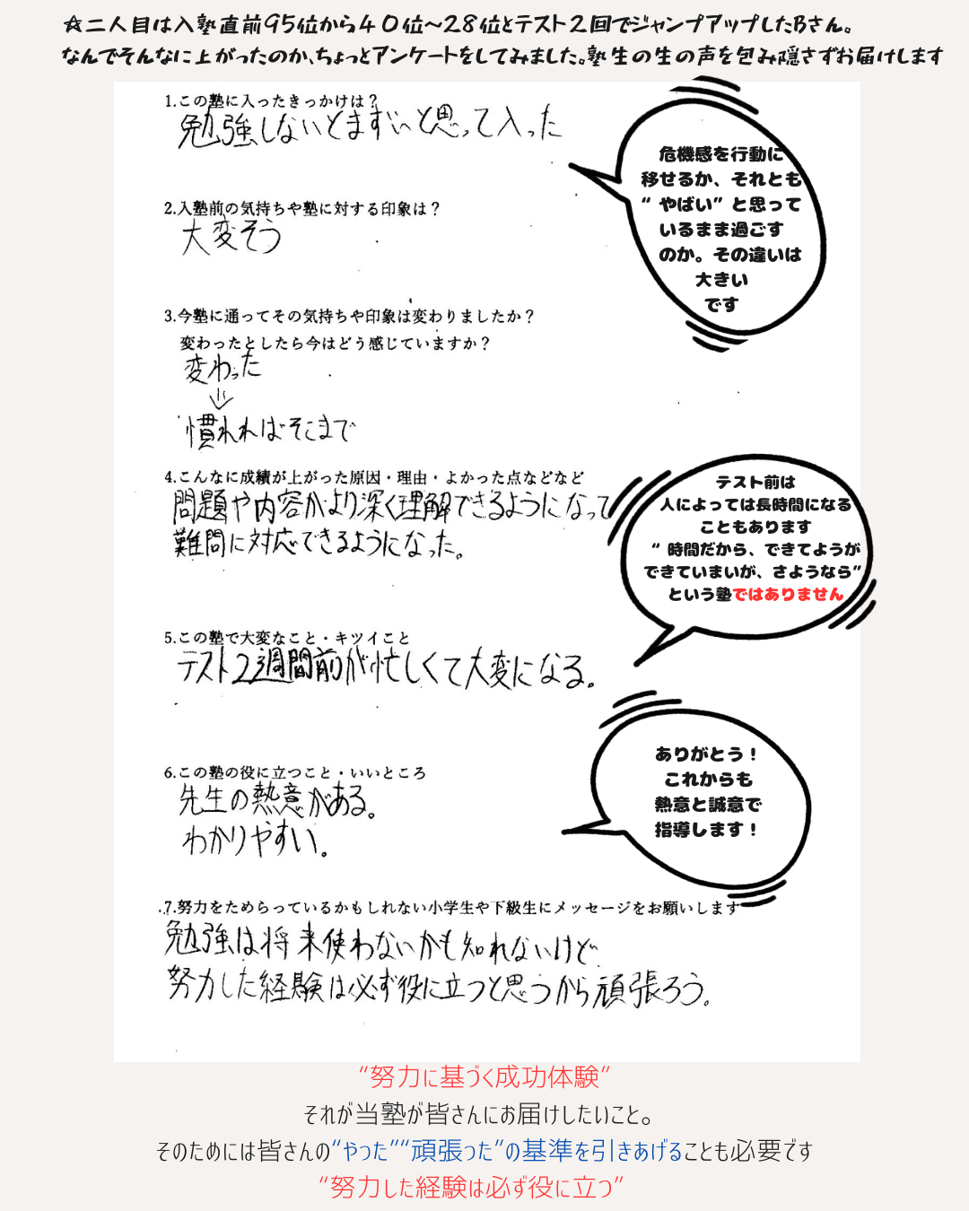 ・Bさん…入塾前順位150位 →入塾後81位 69位UP!
