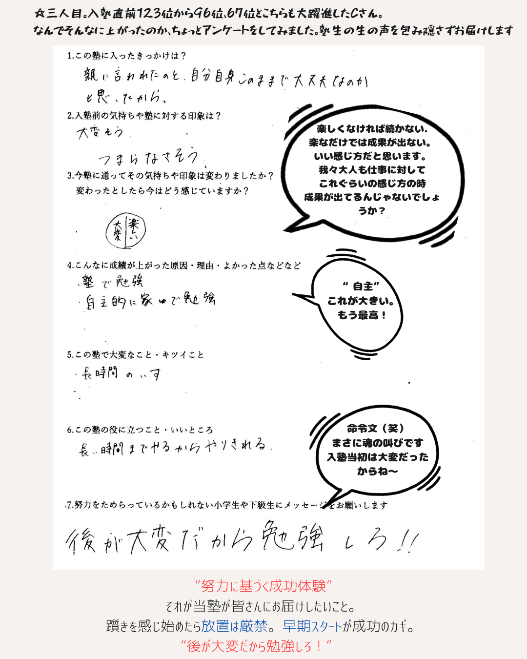 ・Cさん…入塾前順位95位 →入塾後28位 67位UP!